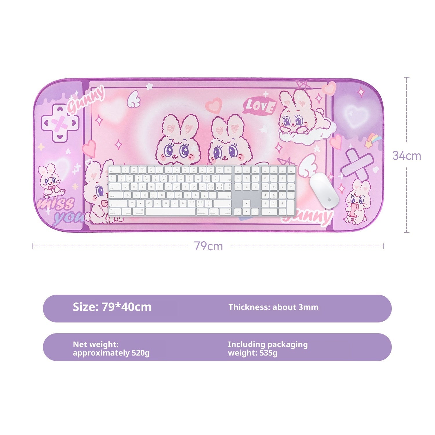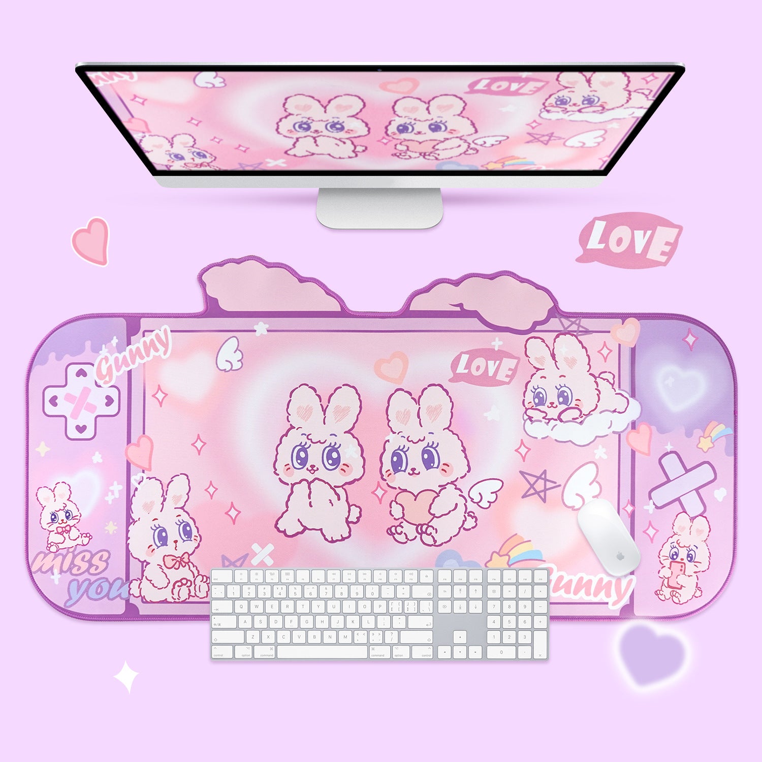 Combineer de Fluffy Rabbit Oversized Muismat met een draadloze muis en compact toetsenbord voor een serene, minimalistische set-up die je focus en comfort verhoogt.